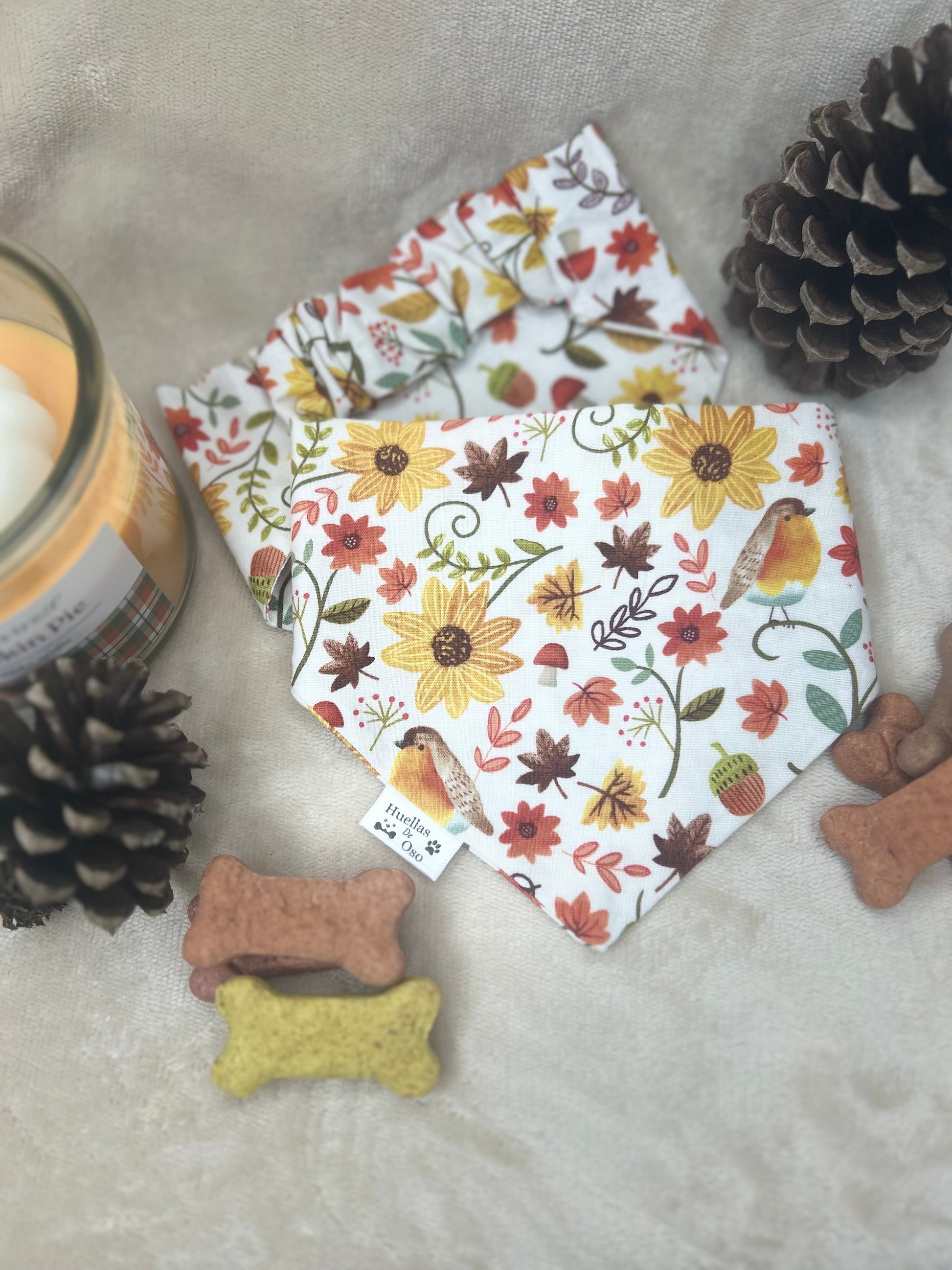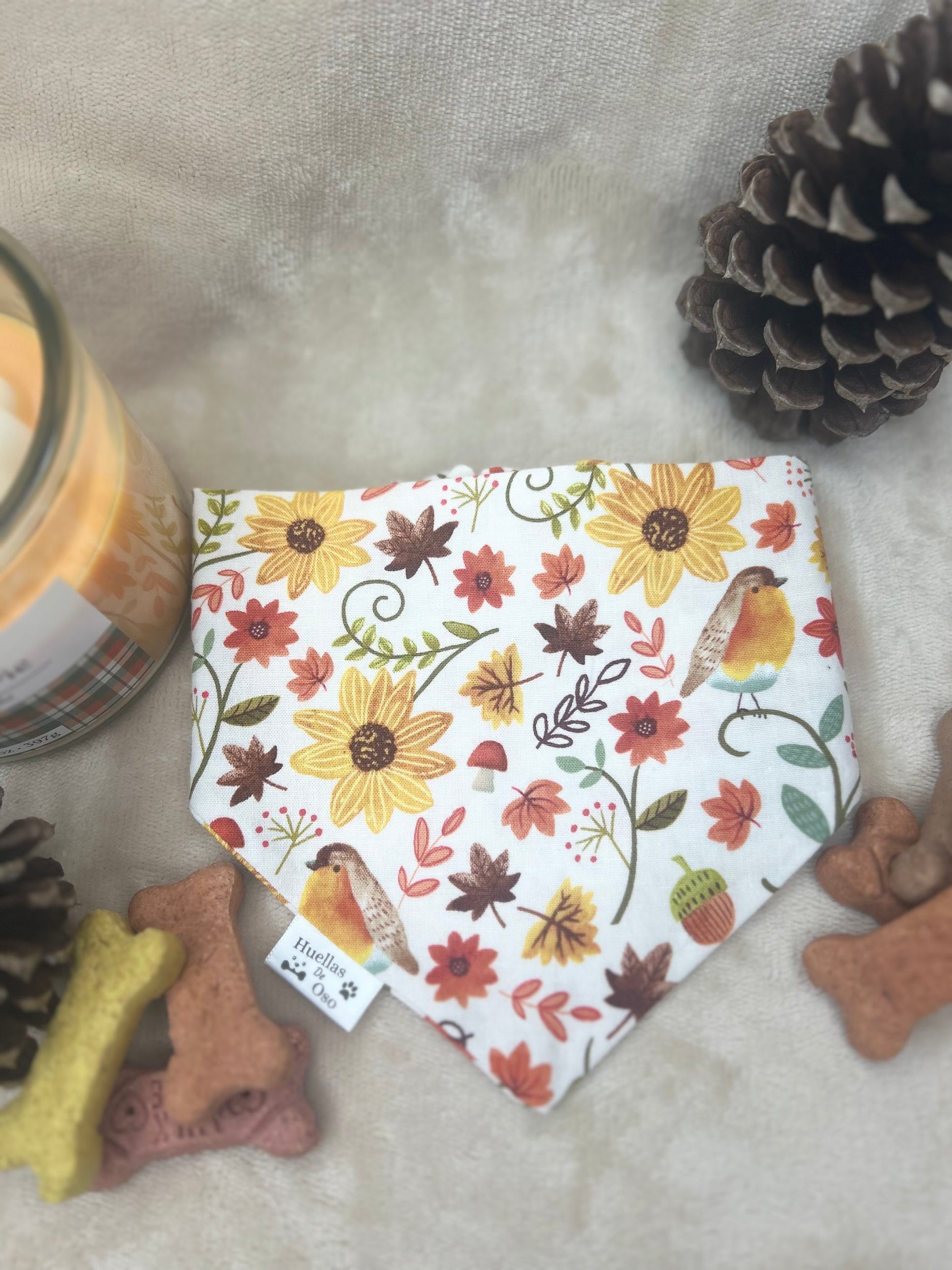 🍂 Autumn Bloom Scrunchie Dog Bandana –